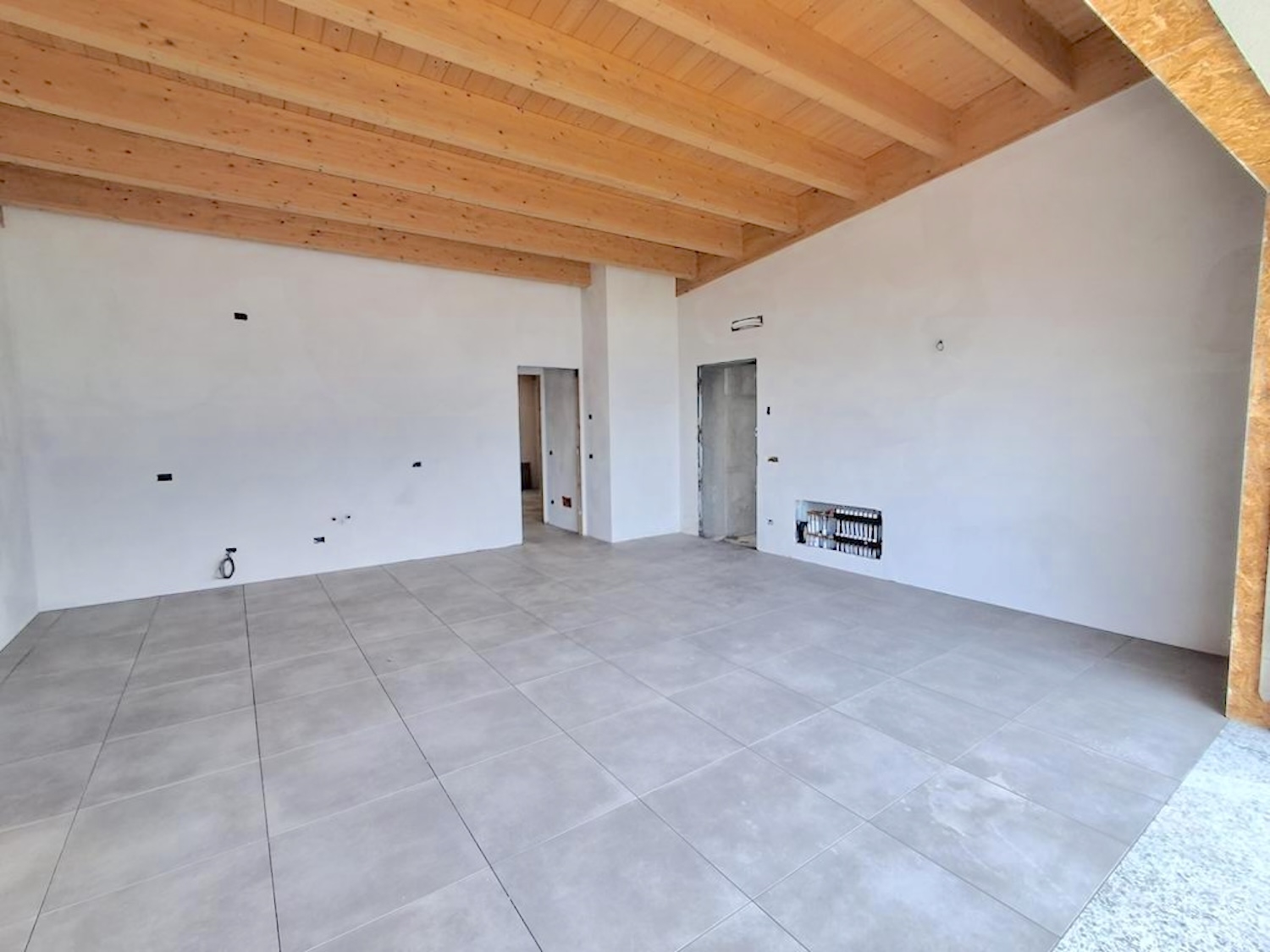 Wohnung A4 im ersten Stock mit einer Wohnfläche von 89 m2 bietet einen großen, hellen Wohnbereich mit Fenstern und Seeblick, eine offene Küche mit Zugang zu einer 14 m2 großen Veranda, zwei Schlafzimmer und zwei Badezimmer.
