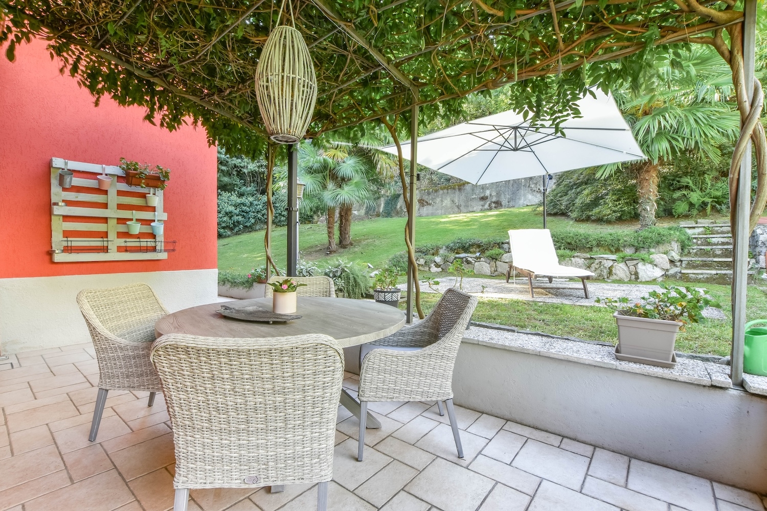 Die Villa ist von einem etwa 1.500m² großen, schön angelegten Garten umgeben, der Platz bietet für einen Grillplatz, eine Veranda und eine Außendusche.