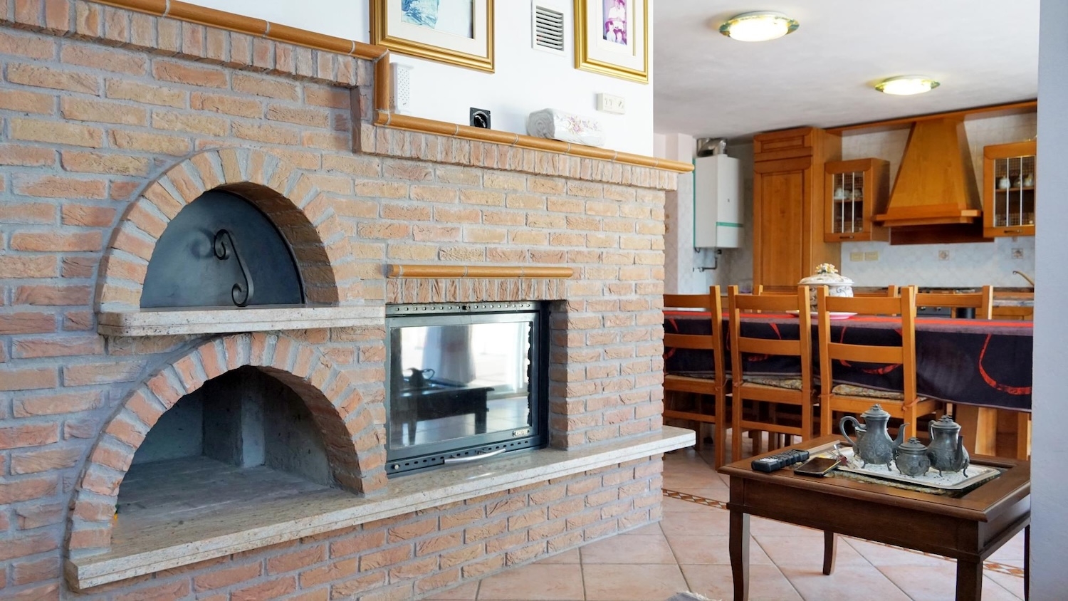 Das Erdgeschoss verfügt über einen großen Keller mit einem Wohnbereich und offener Küche, einem Wohnzimmer mit Kamin und Holzofen, einem Schlafzimmer und einem Badezimmer, die alle mit der großzügigen Garage verbunden sind.