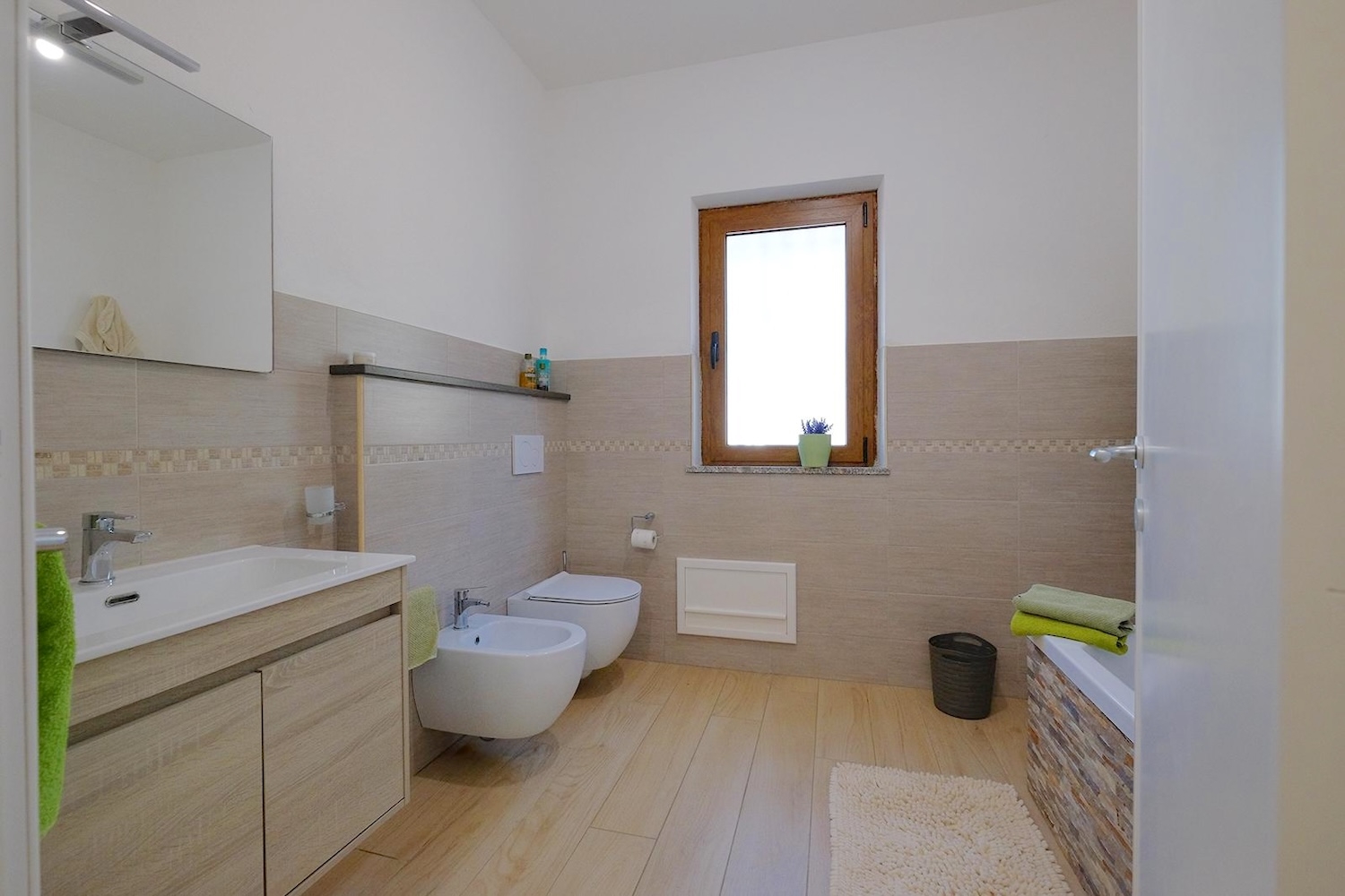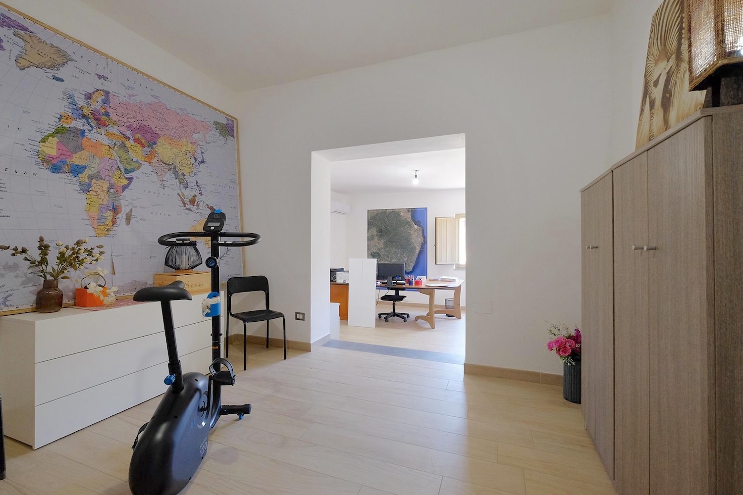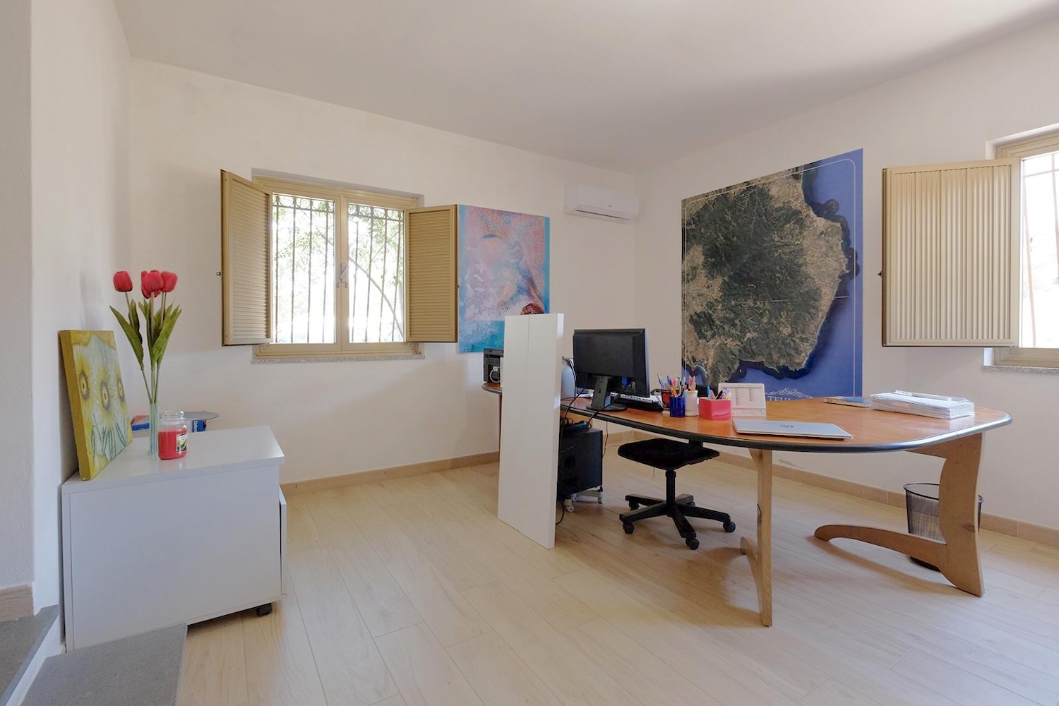 Im Schlafbereich sorgen zwei große Schlafzimmer und ein elegantes Badezimmer mit Badewanne für maximale Entspannung. Weiter hinten befinden sich ein drittes geräumiges Schlafzimmer und ein zweites Badezimmer mit Dusche sowie zwei zusätzliche Räume, die sich ideal als Büro, Atelier oder für andere Zwecke eignen.