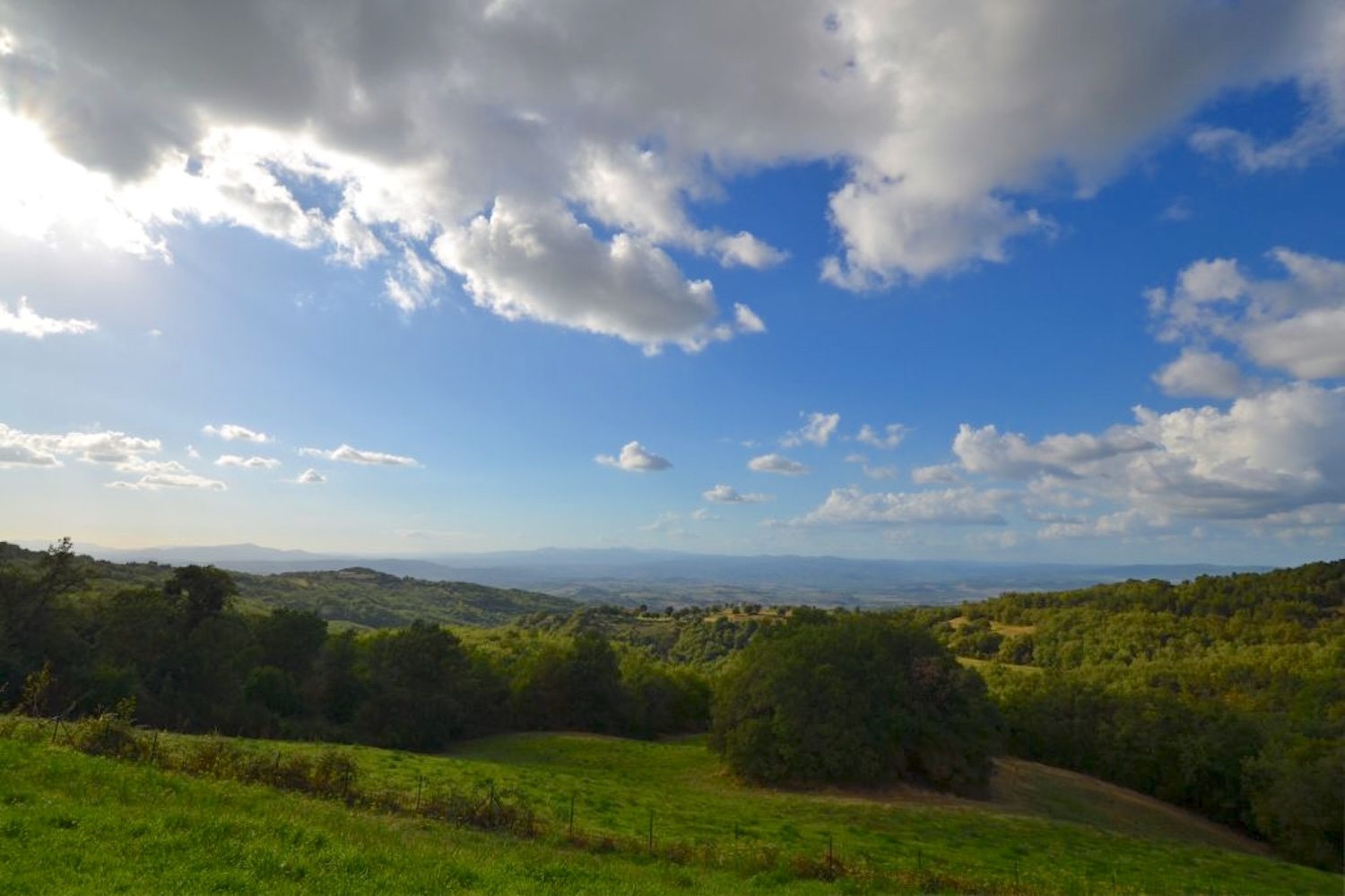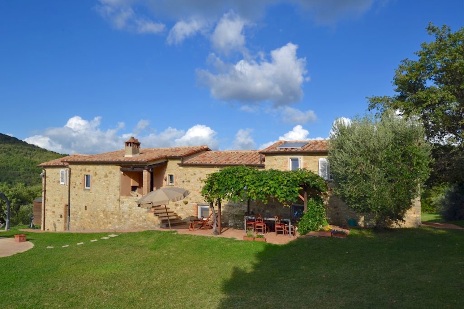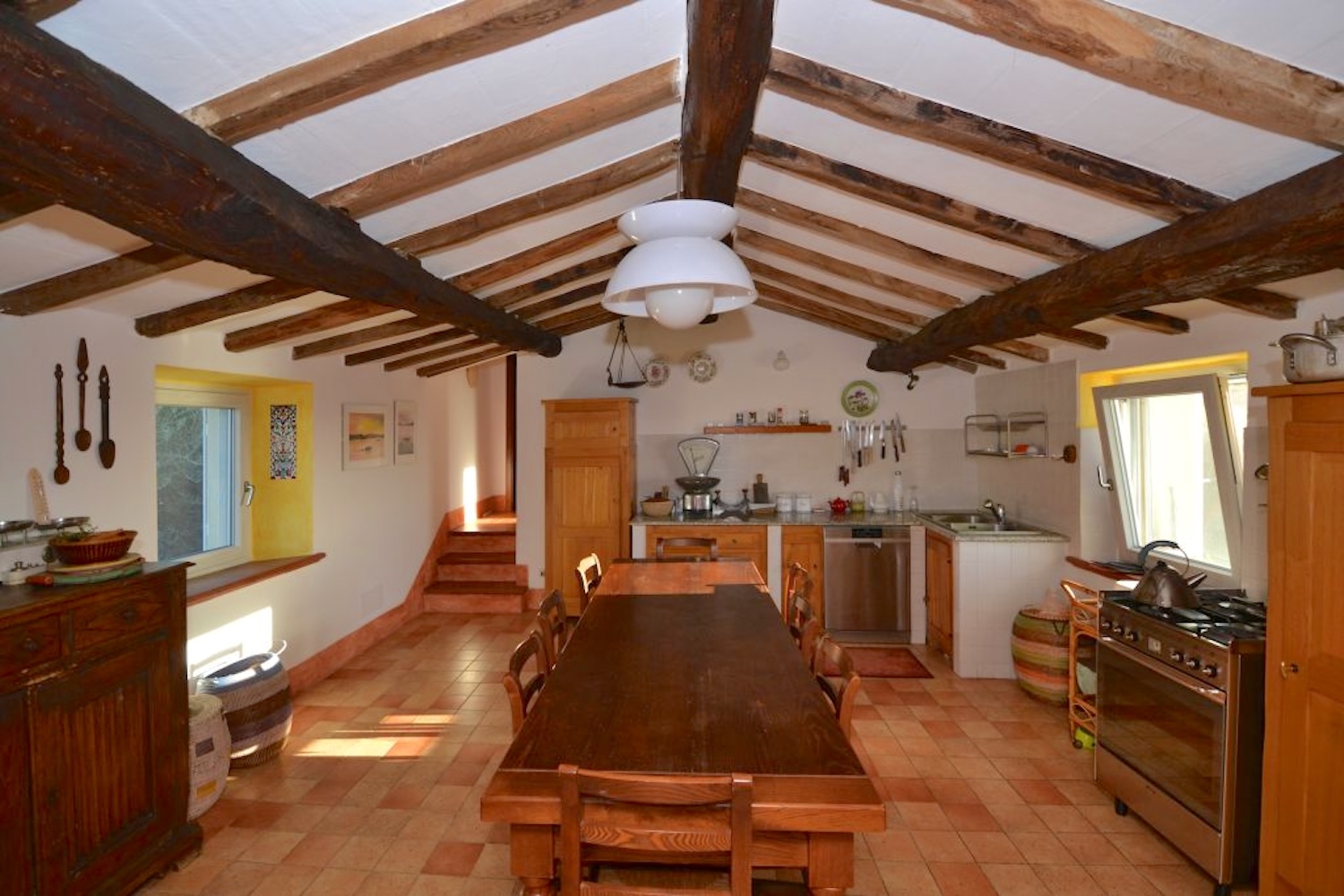 Großzügiges Steinbauernhaus, energieeffizient renoviert mit Panoramapool und 15 Hektar Land mit Olivenhain.