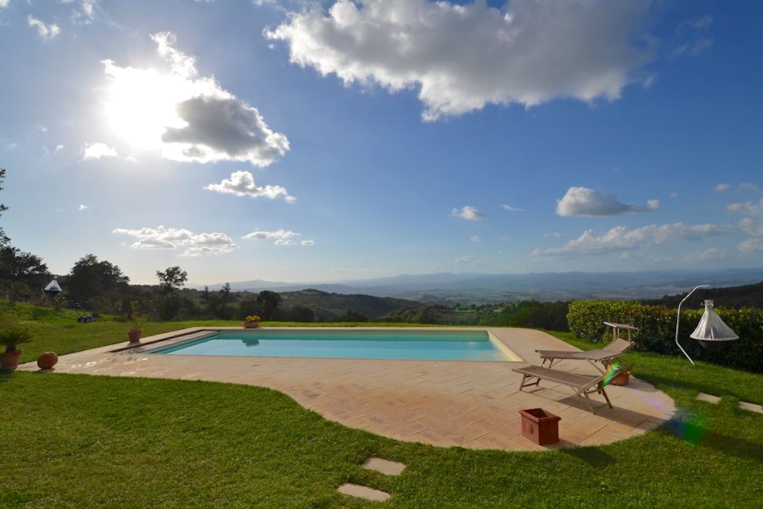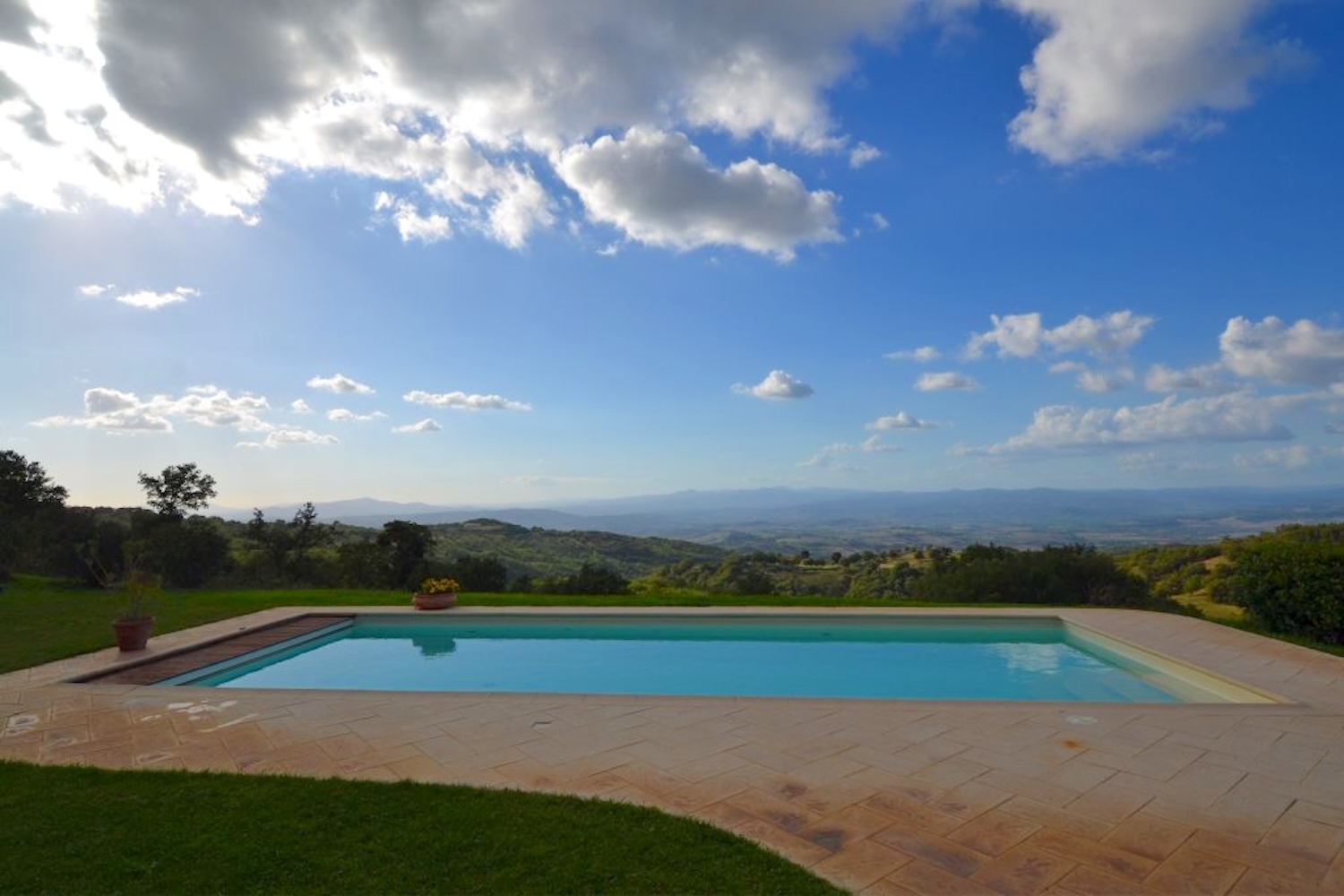 Ein ca. 3.000 m² großes, umzäuntes Grundstück umgibt das Haus und beherbergt einen prächtigen, beheizten Swimmingpool mit elektrischer Abdeckung und atemberaubenden Panoramablick. Pergolen und ein Grillplatz laden zum Verweilen an Sommertagen ein. In der Nähe des Eingangs befindet sich ein Brot- und Pizzaofen.