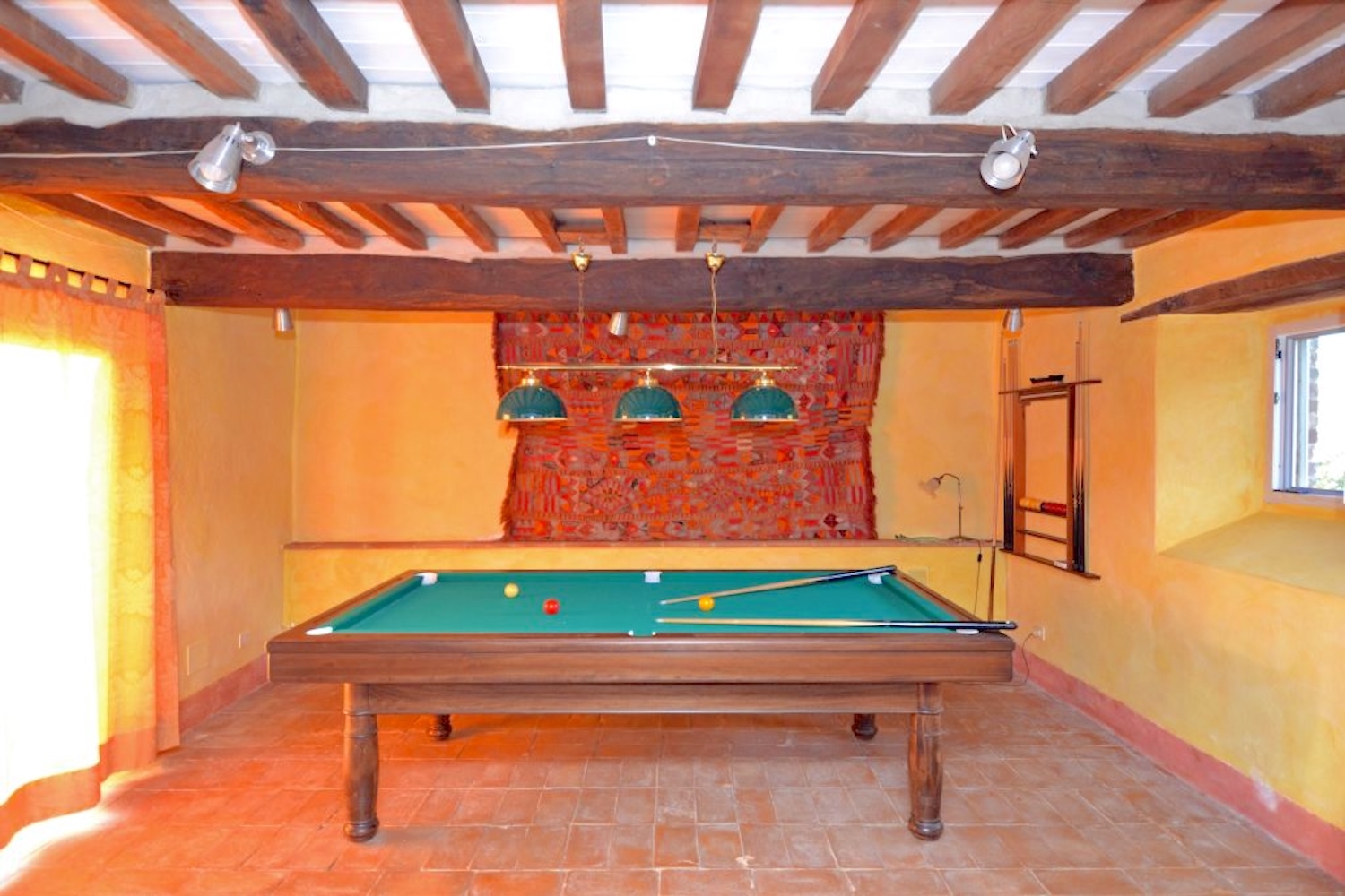 Dort befinden sich ein weiteres Schlafzimmer, ein Badezimmer, ein großes Wohnzimmer mit Kaminofen und ein Billardzimmer, das sich leicht in ein viertes Schlafzimmer umwandeln lässt.