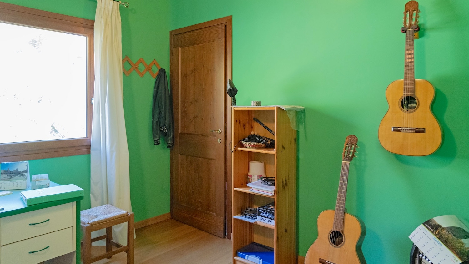 Das Hauptschlafzimmer verfügt zudem über einen begehbaren Kleiderschrank und direkten Zugang zum Garten.