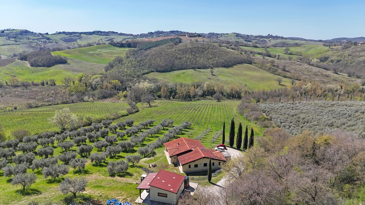 Das Grundstück wurde 2012 teilweise mit einem IGT-Sangiovese-Weinberg bepflanzt und umfasst ca. 2 Hektar. Ein weiterer Teil besteht aus einem Olivenhain mit ca. 130 Bäumen, und ein Teil ist unbebaut und könnte als Obstgarten angelegt werden.